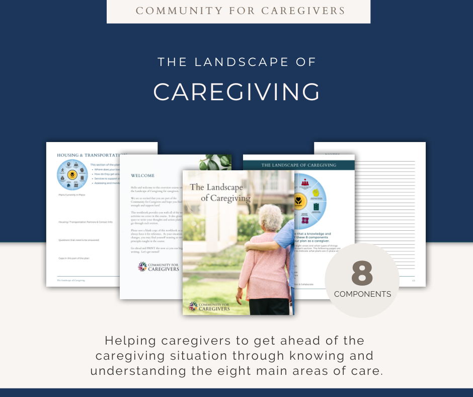 Download The Landscape of Caregiving Workbook to take notes on the 8 essential areas of care that are covered in the overview course.